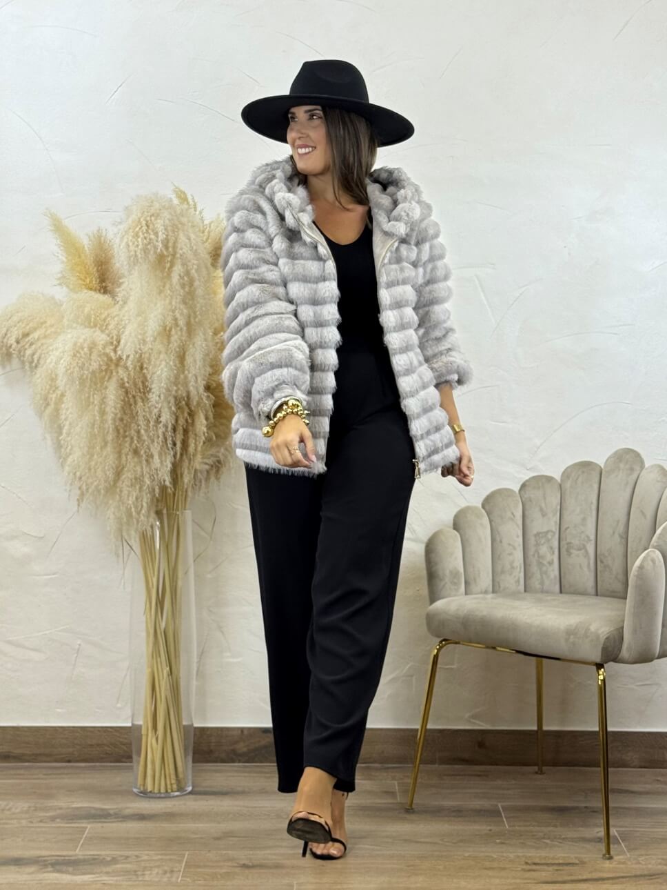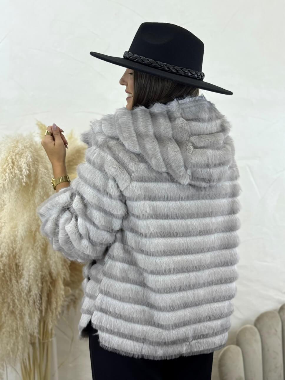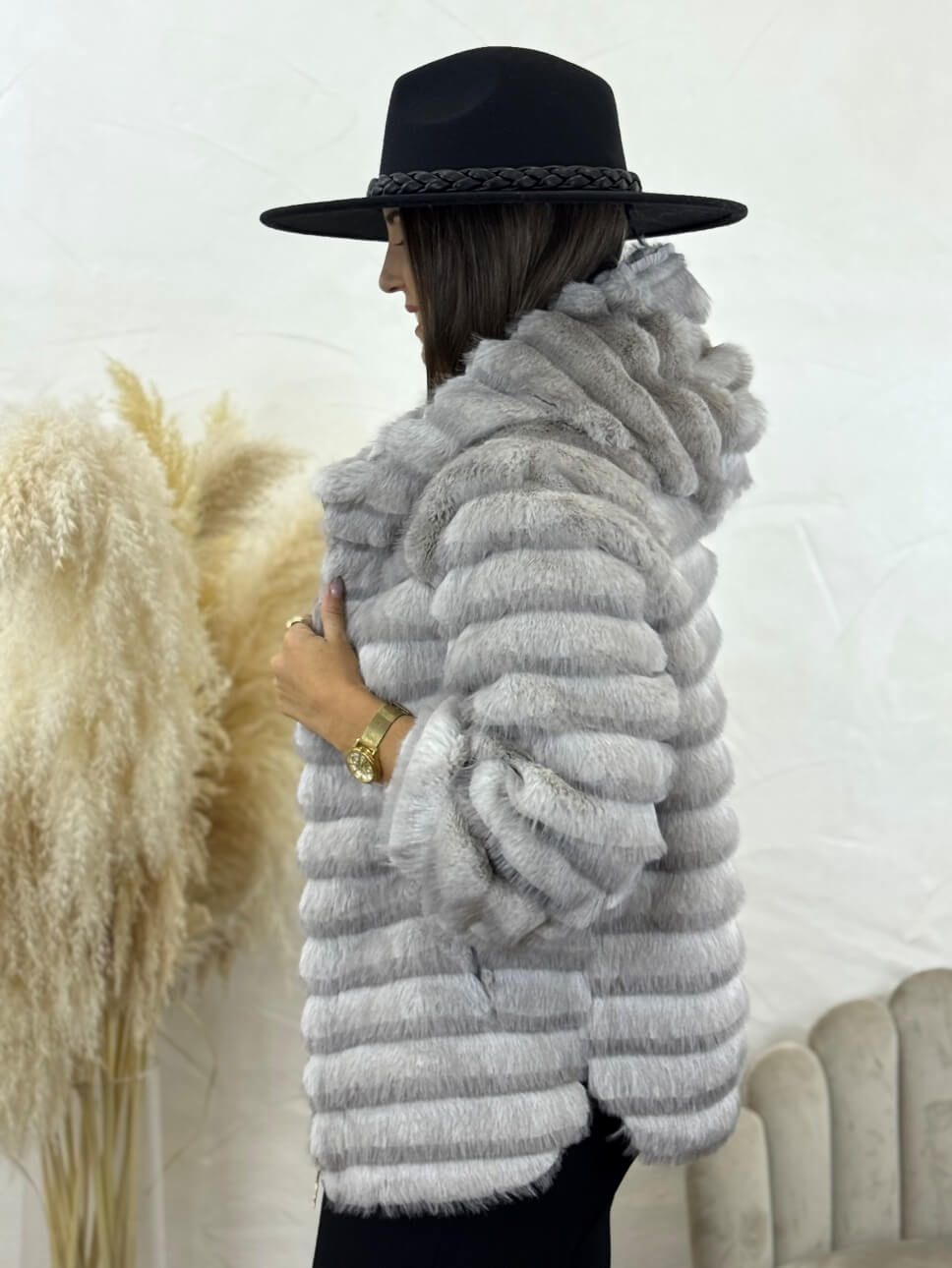 Abrigo de la colección Capelli con capucha y bolsillos laterales. Pelo sintético de alta calidad.