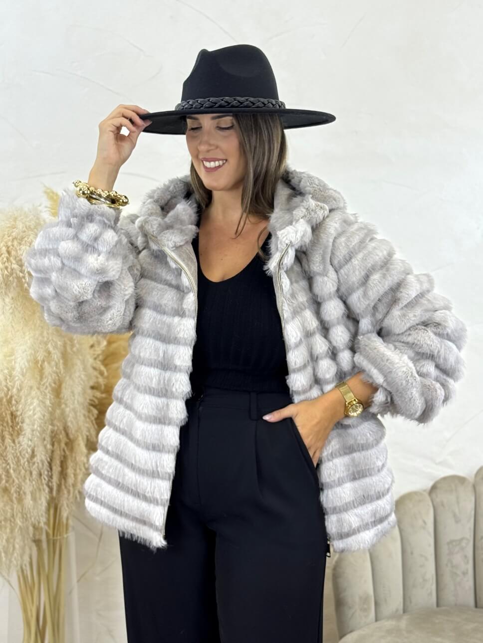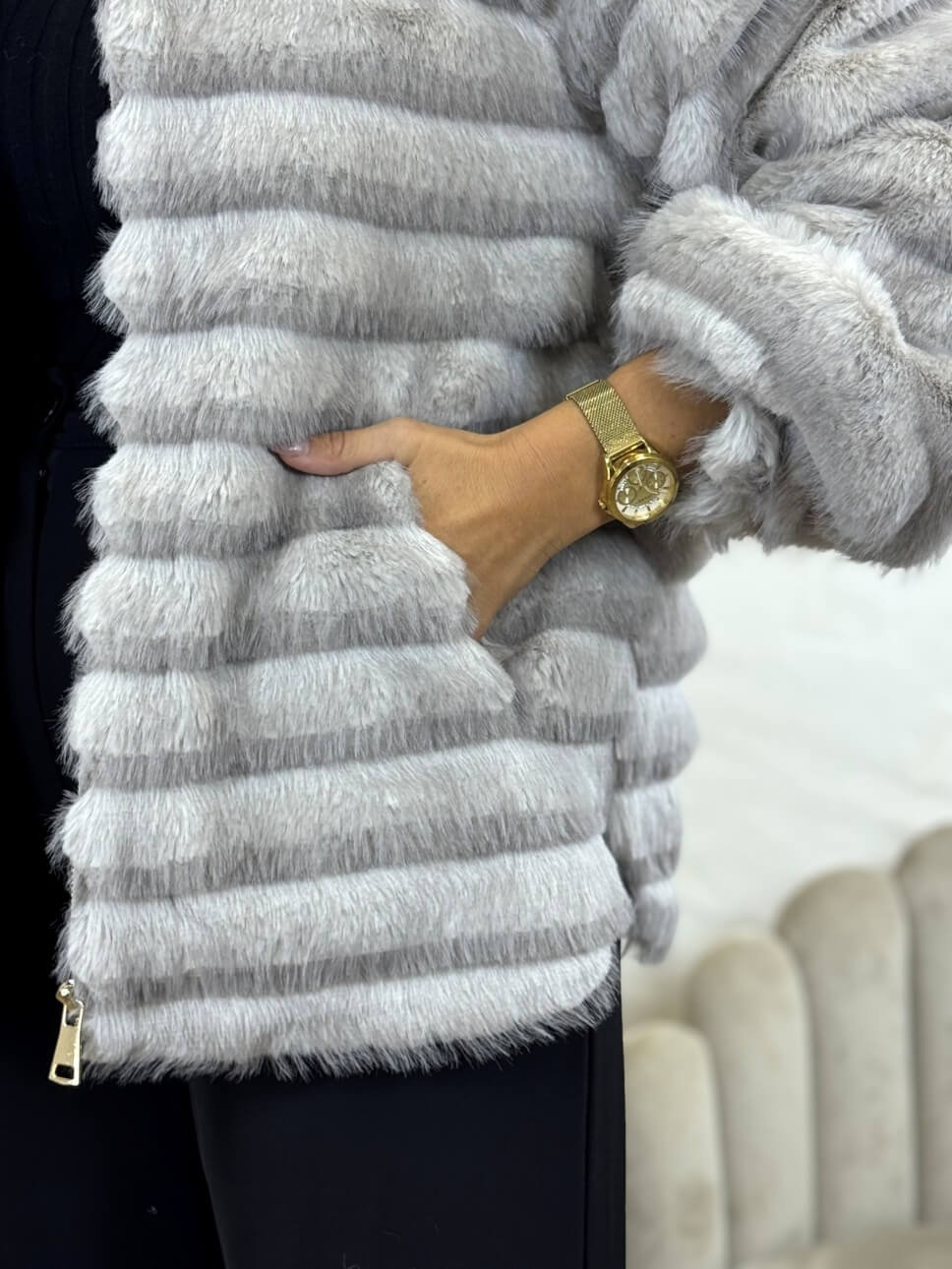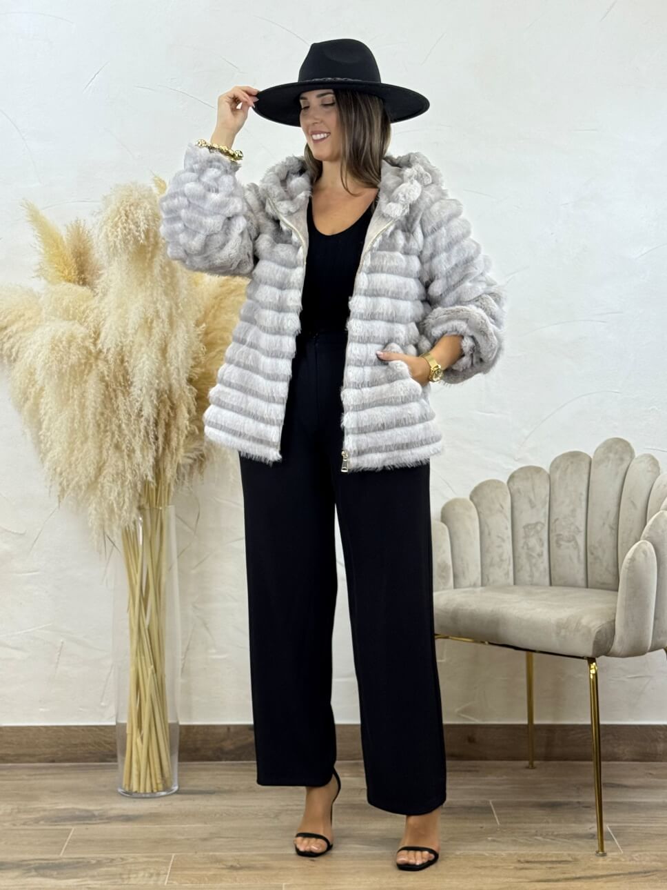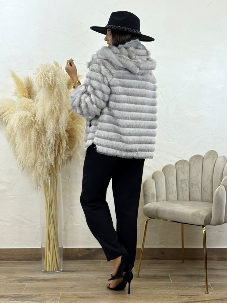 Abrigo de la colección Capelli con capucha y bolsillos laterales. Pelo sintético de alta calidad.