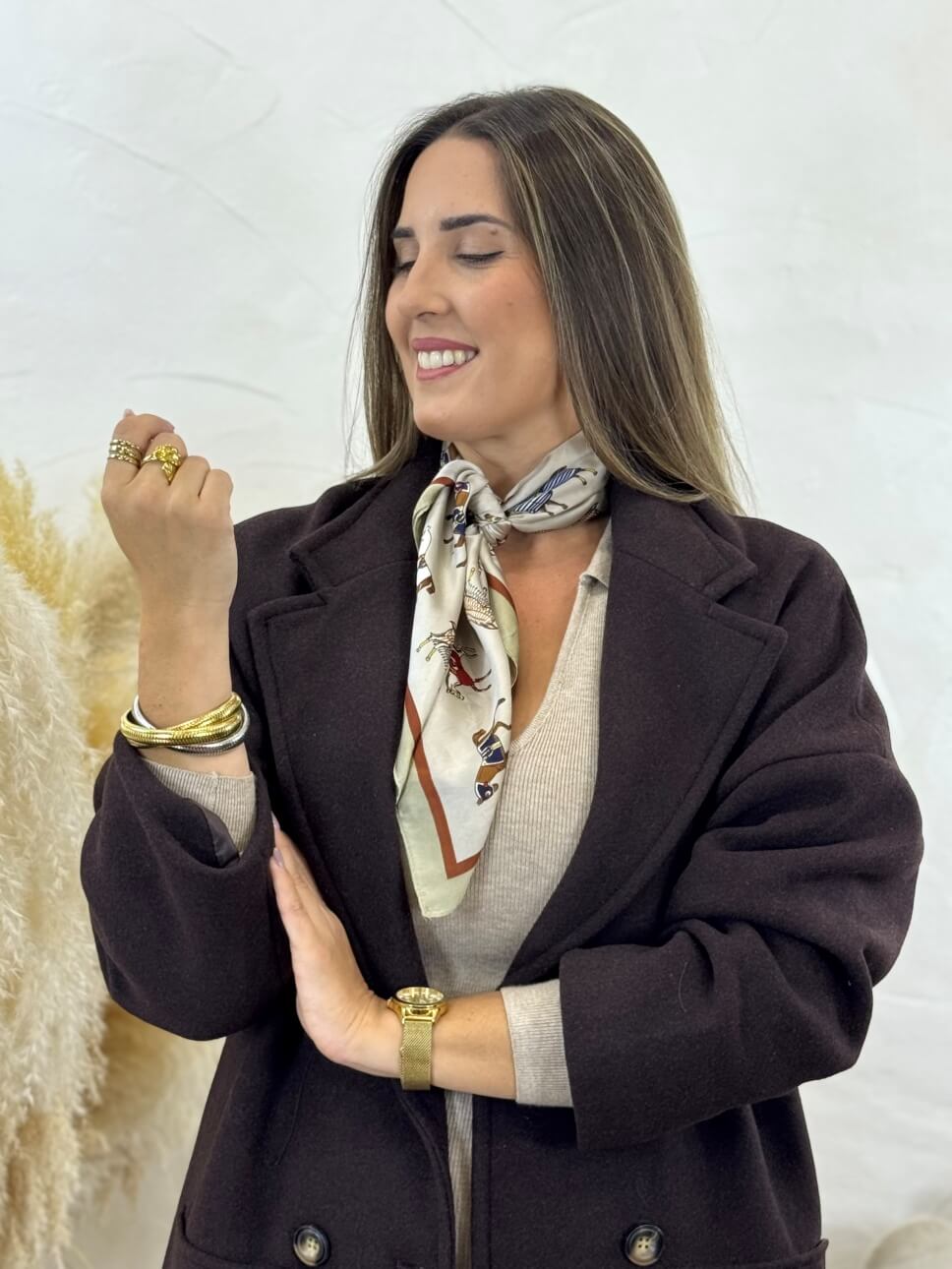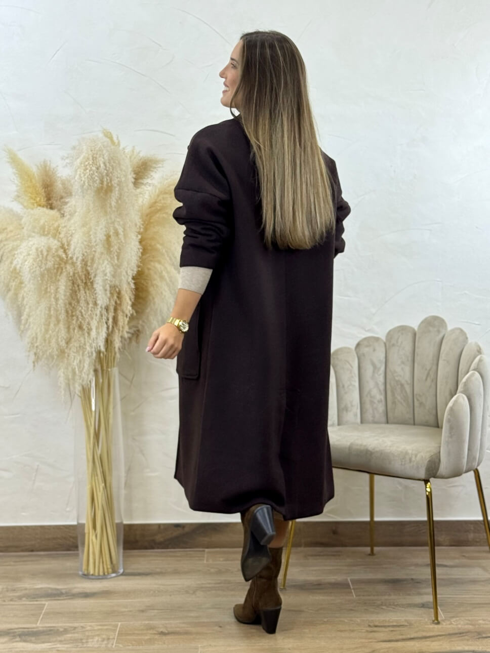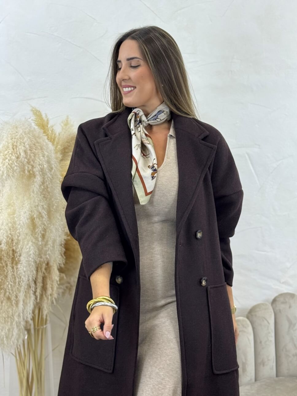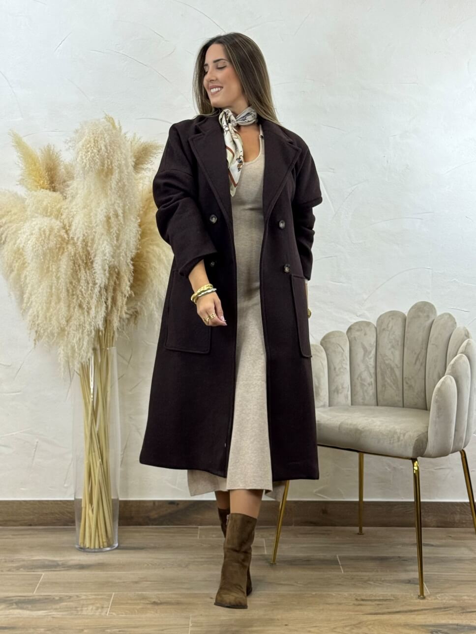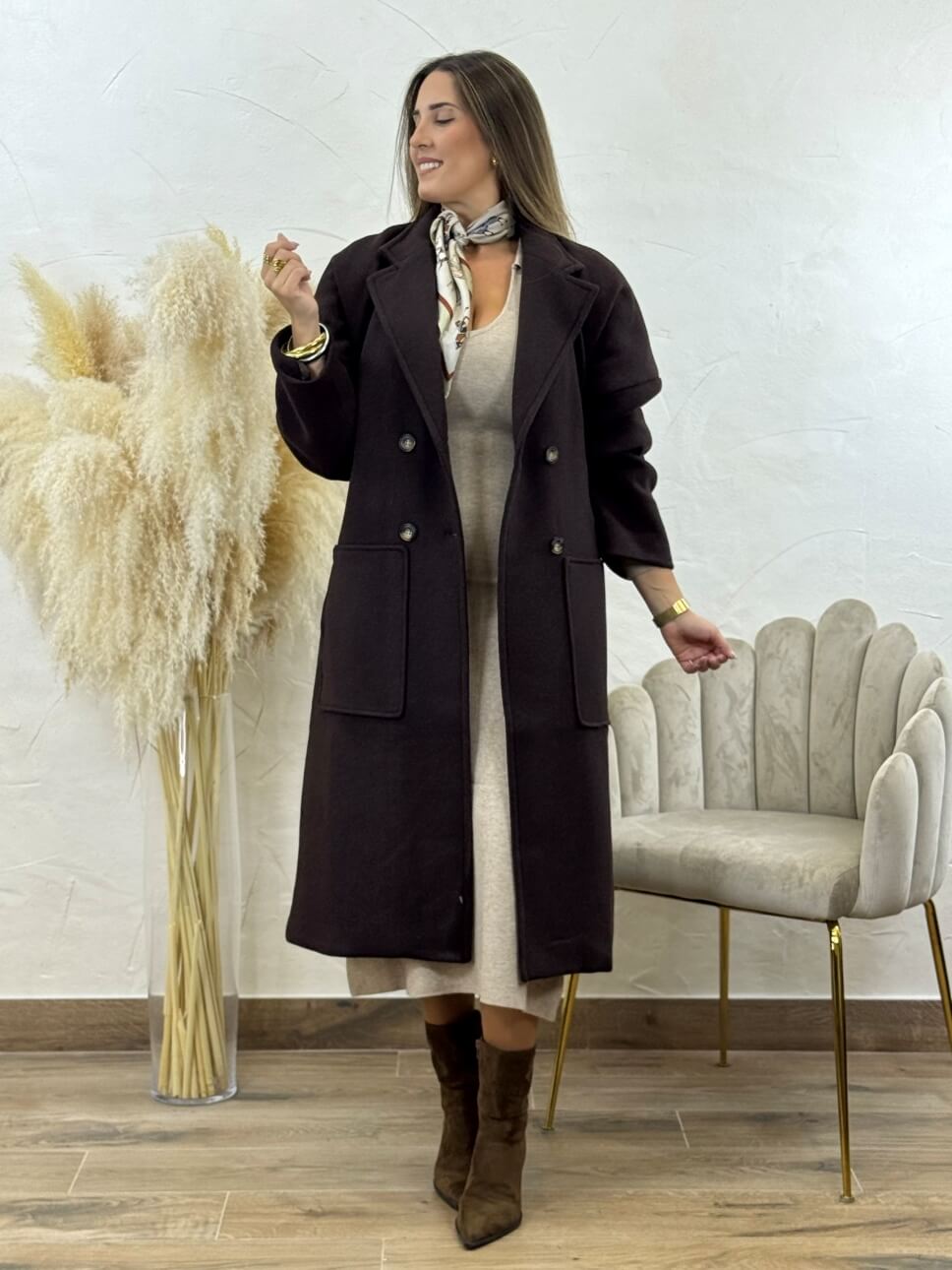 Abrigo de paño de la marca Allo Allo con cierre abotonado en la parte delantera, bolsillos delanteros, abertura trasera, Forro interior.