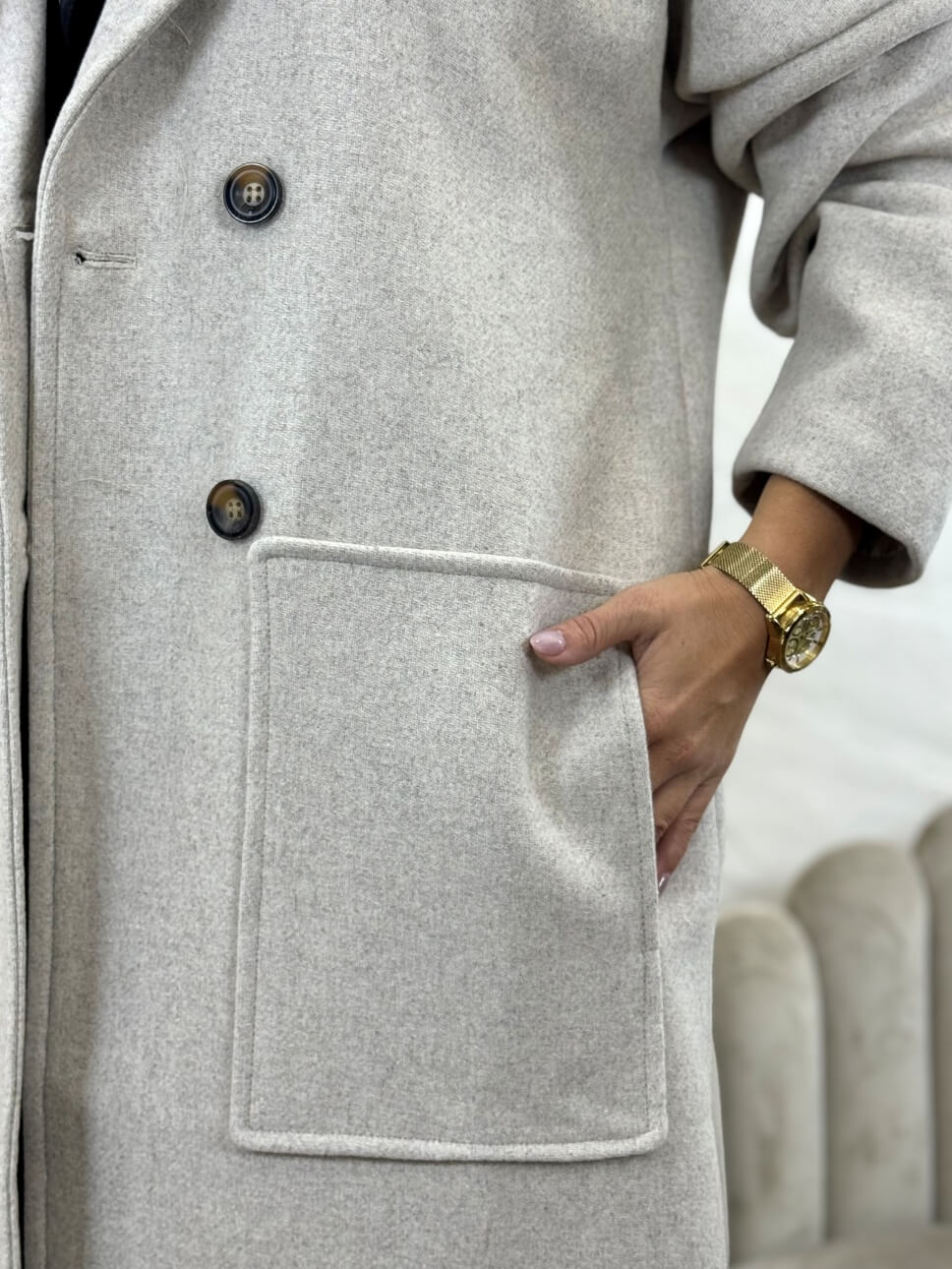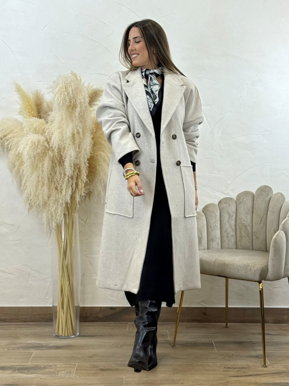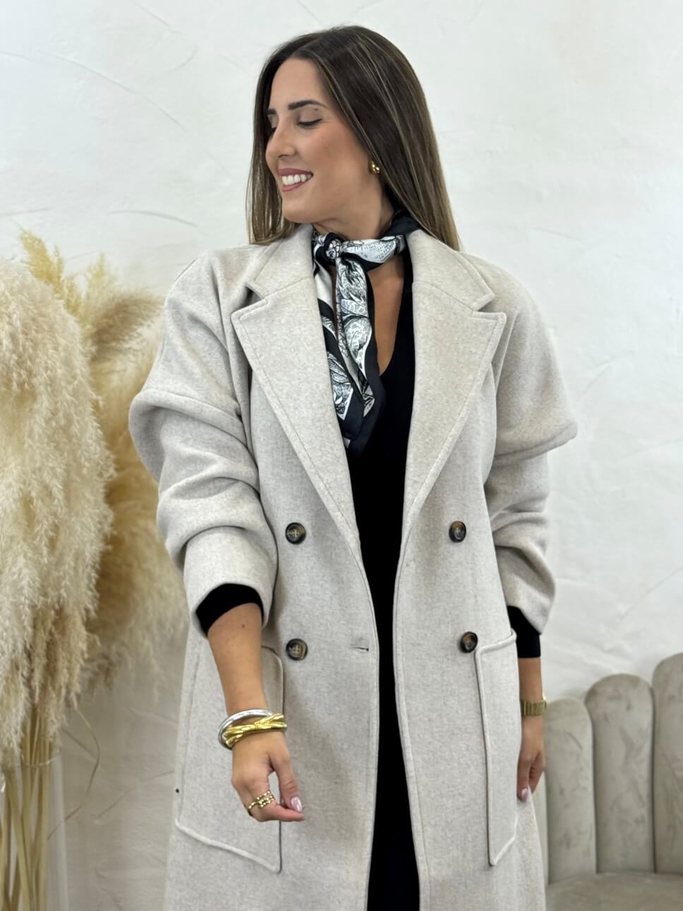 Abrigo de paño de la marca Allo Allo con cierre abotonado en la parte delantera, bolsillos delanteros, abertura trasera, Forro interior.