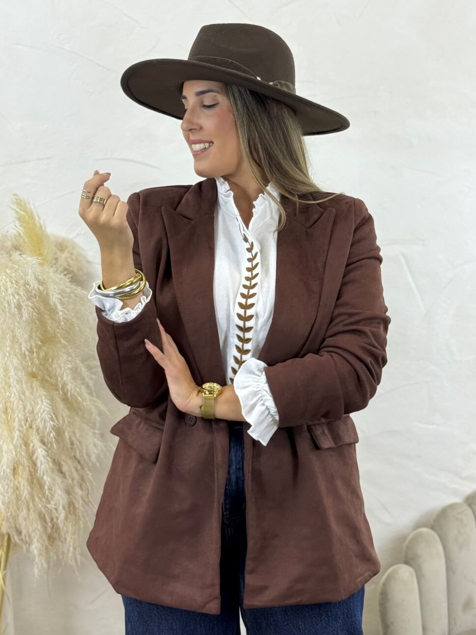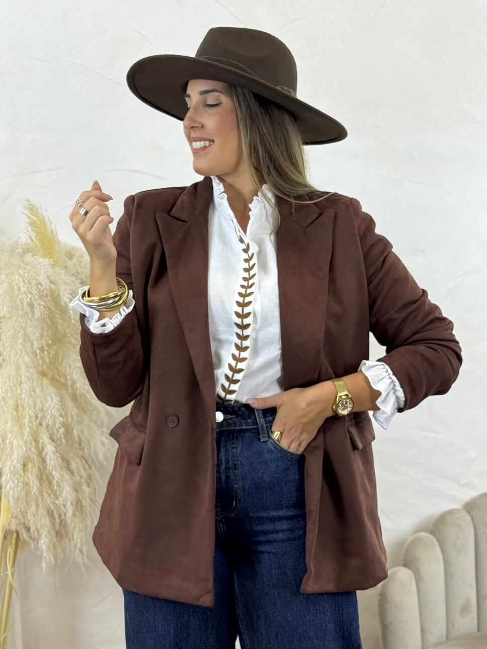 Blazer cruzada de Antelina  con cierre abotonado y bolsillos con solapa.