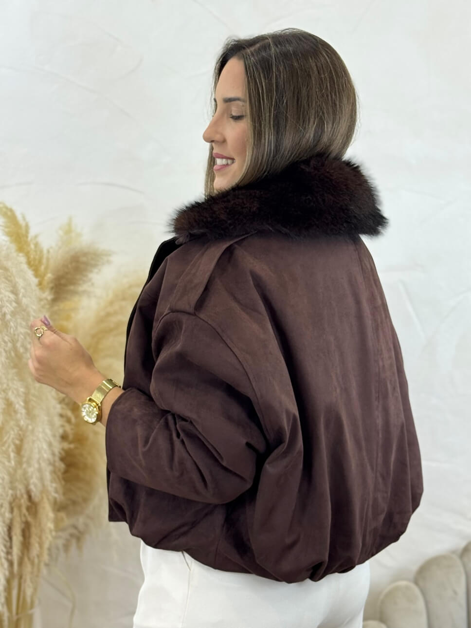 Bómber Ante Pelo Débora Marrón