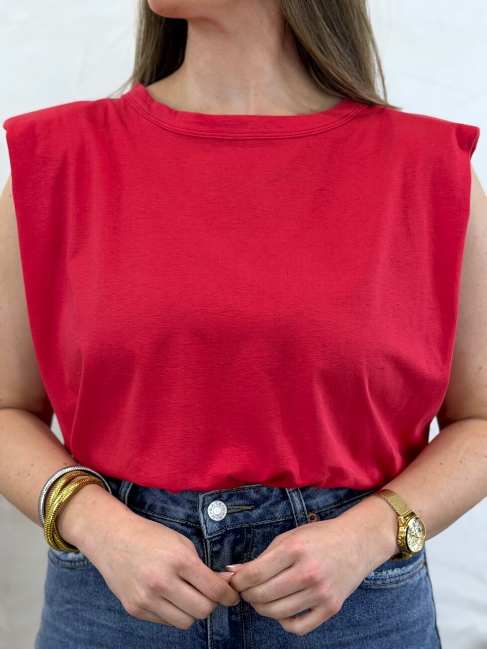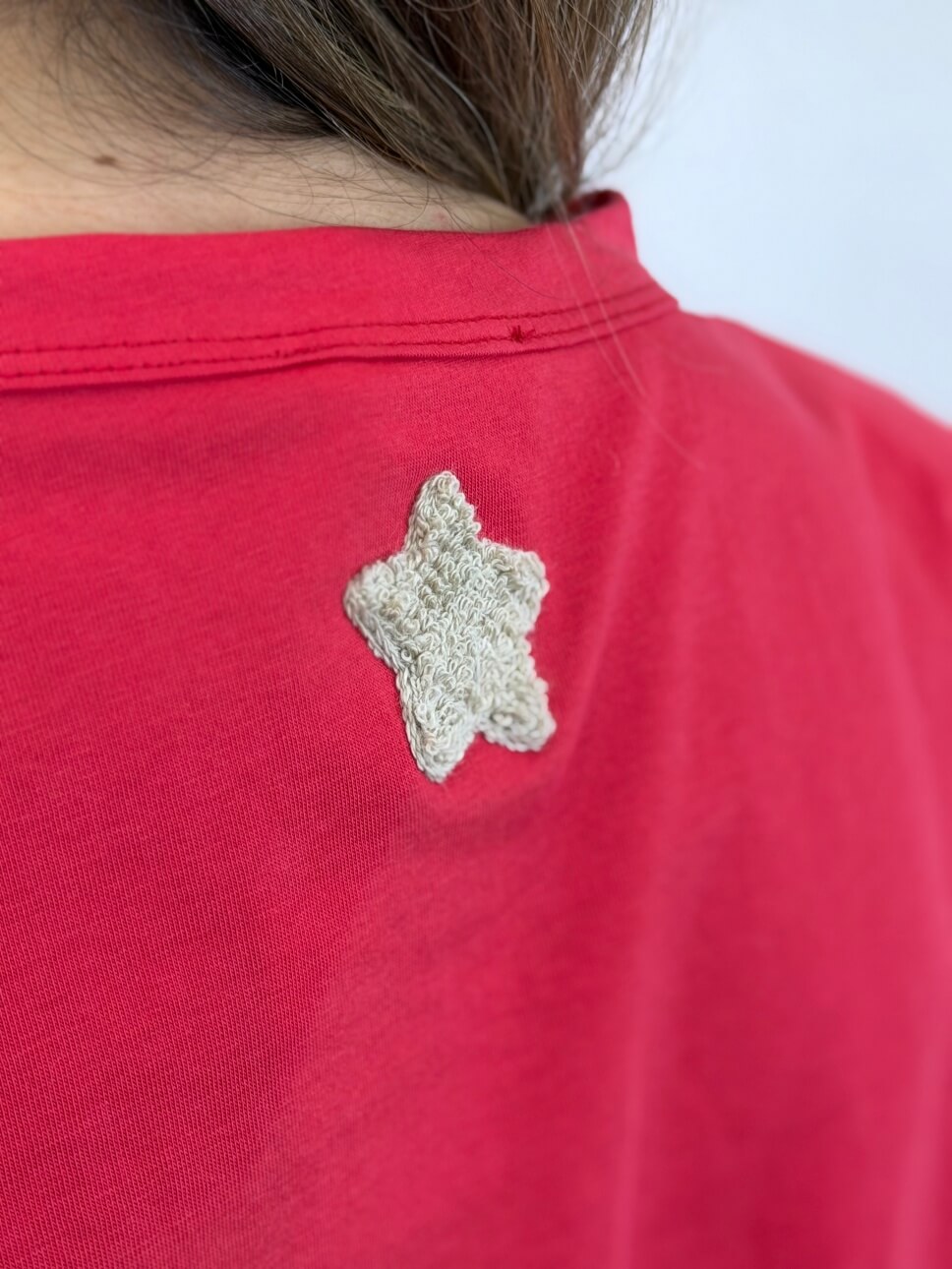 Camiseta de hombreras de la marca Allo Allo lisa y estrella estampada en la parte trasera en tejido de relieve.