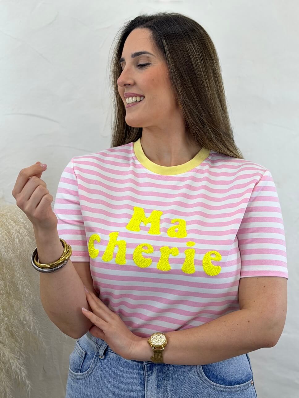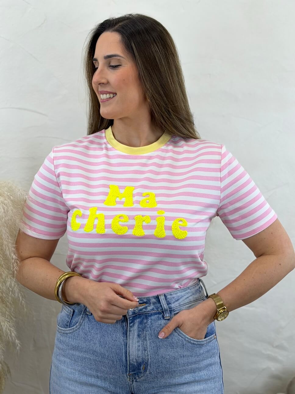 Camiseta Ma Cherie Rosa & Amarillo