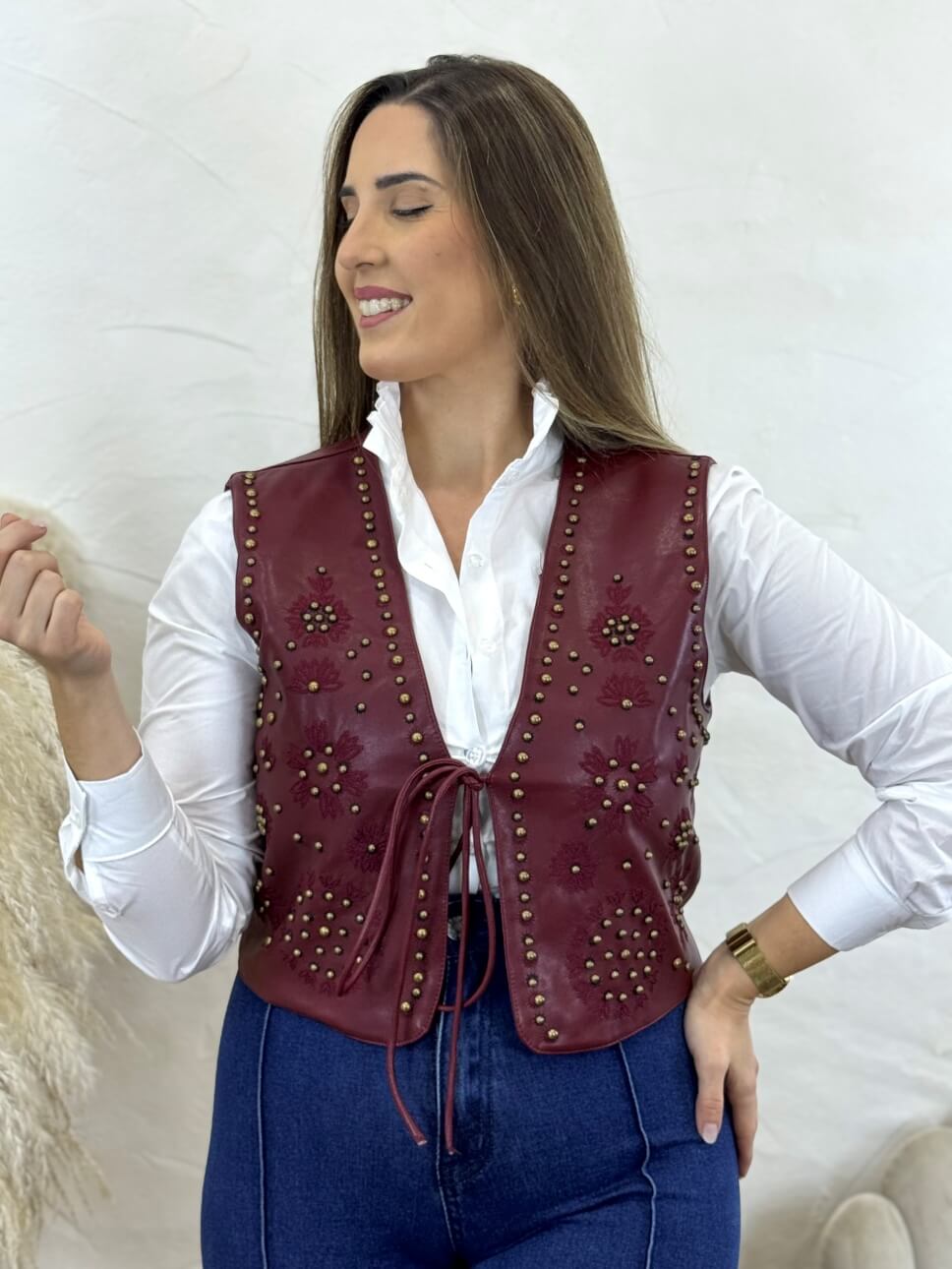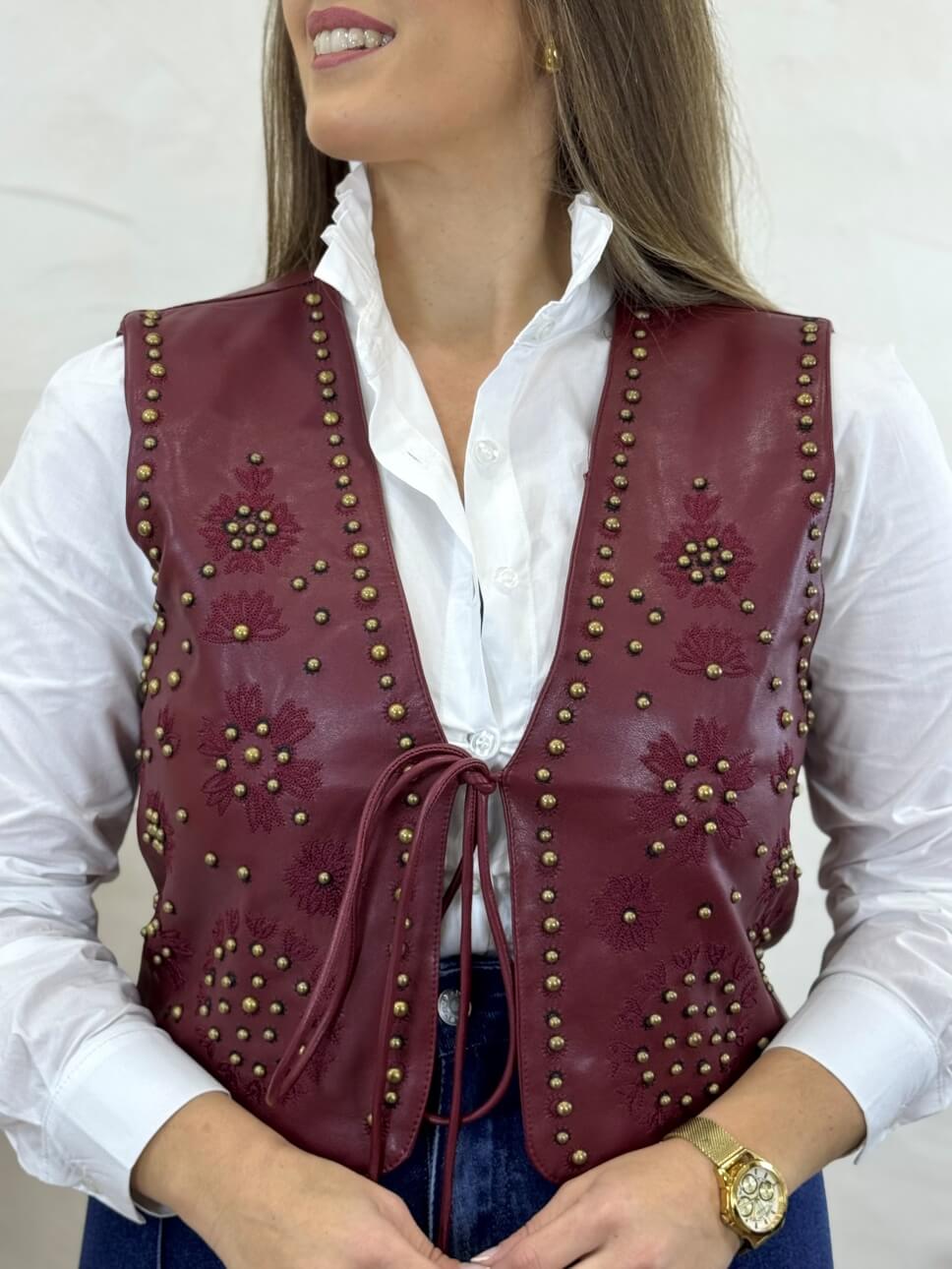 Chaleco Polipiel Tachuelas Paola Burdeos