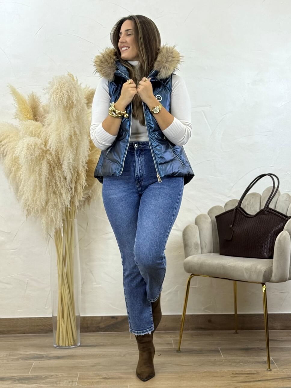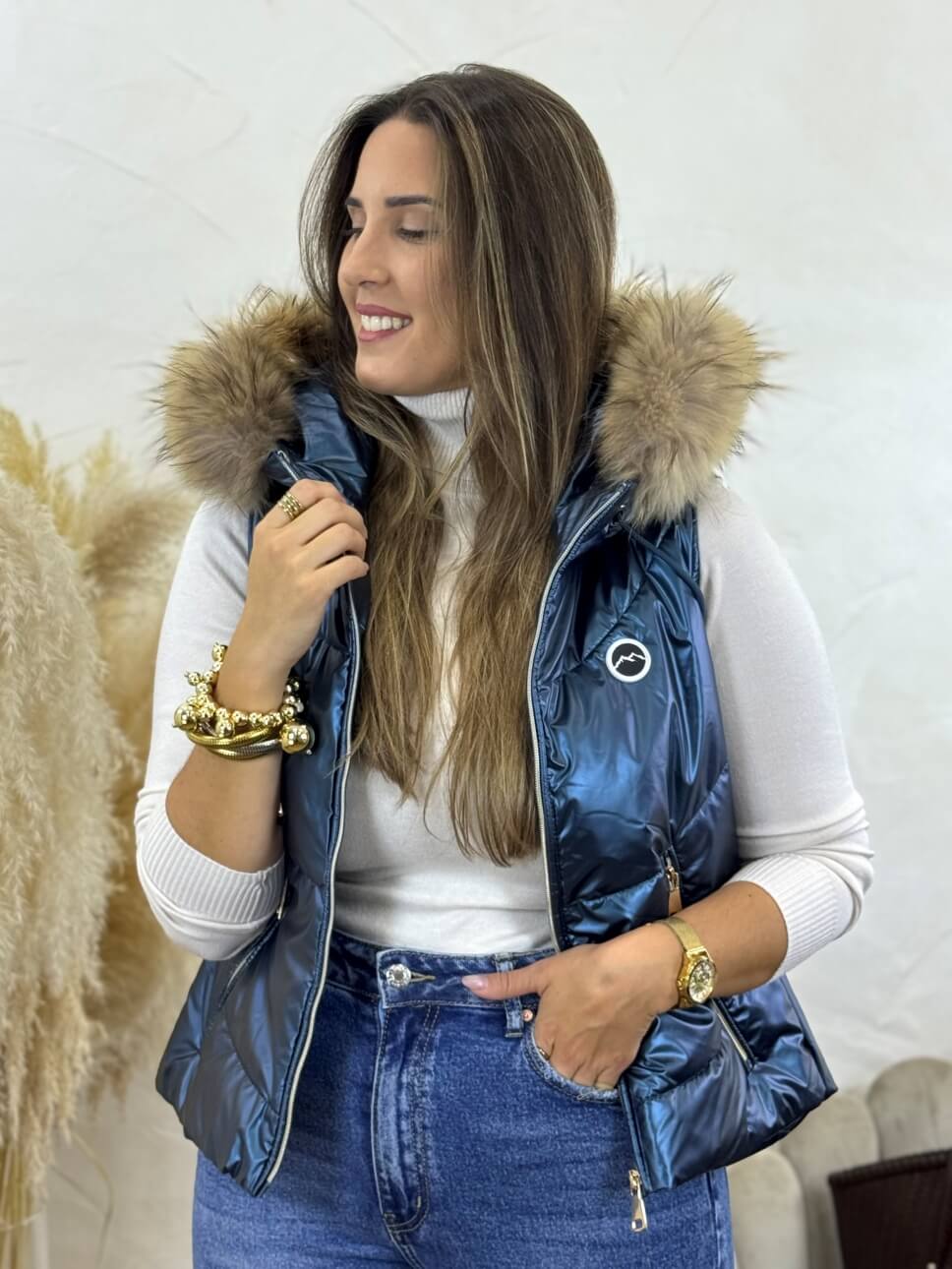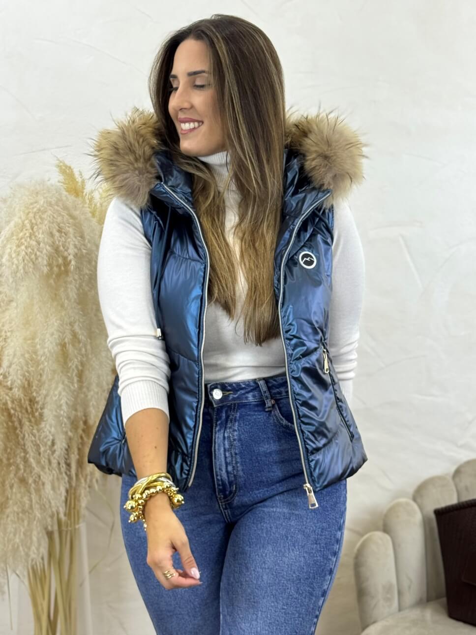 Chaleco Snow Metalizado Kim Azul Pato