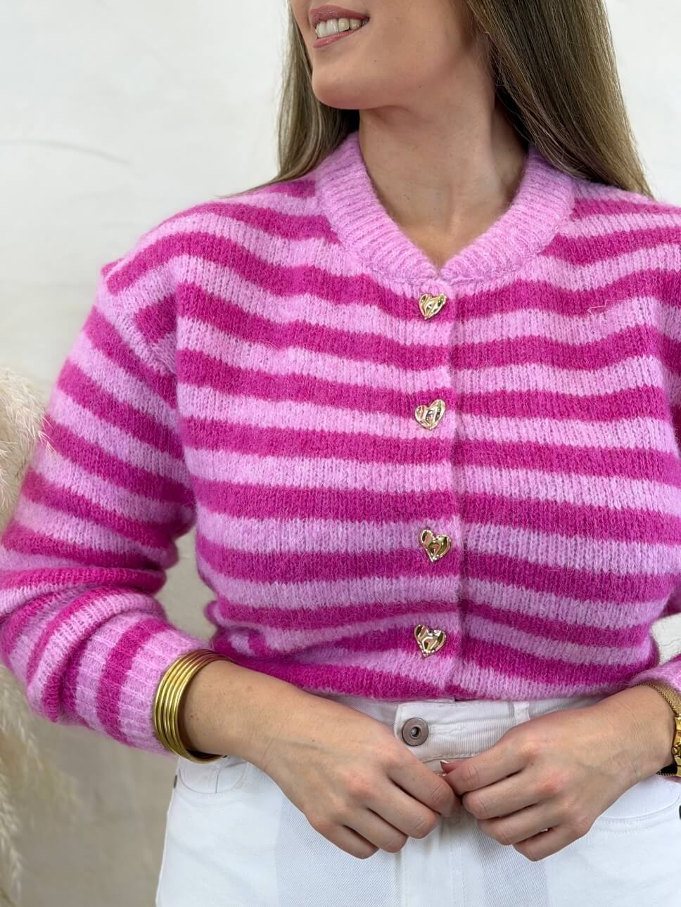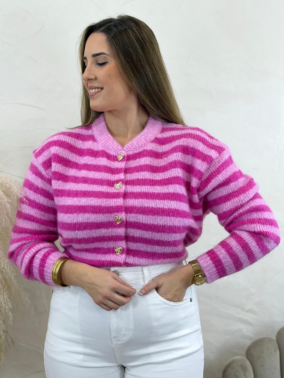 Chaqueta Rayas Botón Corazón Fucsia& Rosa