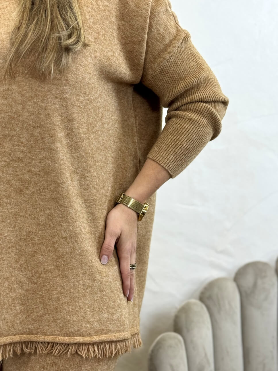 Cintura 29 cm. (Tiene goma elástica). Cadera 46 cm. Largo 114 cm.(sin contar flecos).