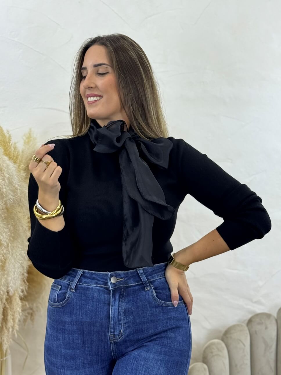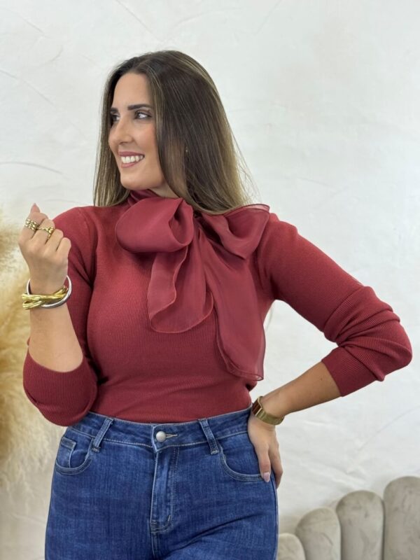 Jersey de canalé con lazo en el cuello.