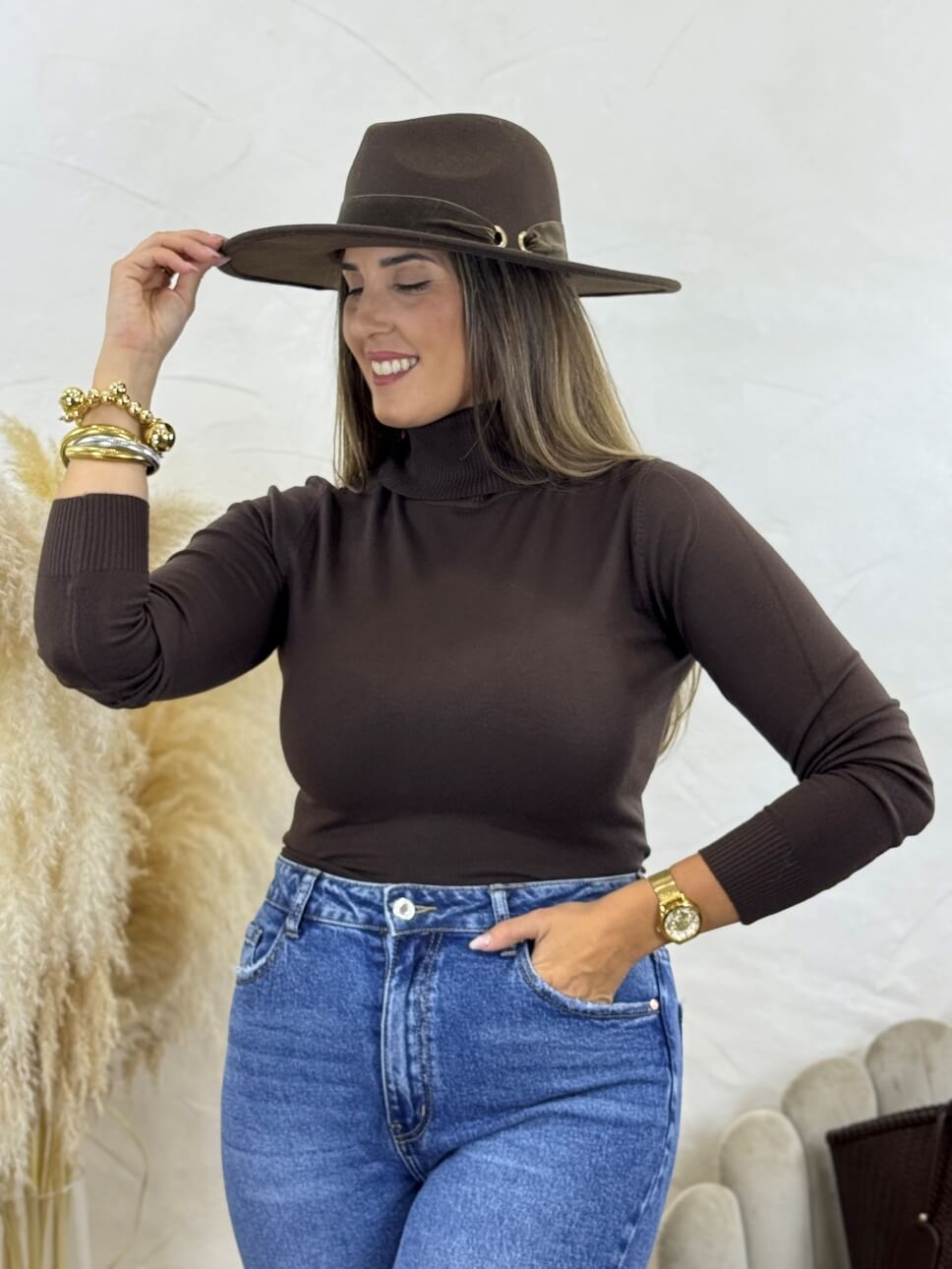 Jersey Cuello Vuelto Basic Marrón