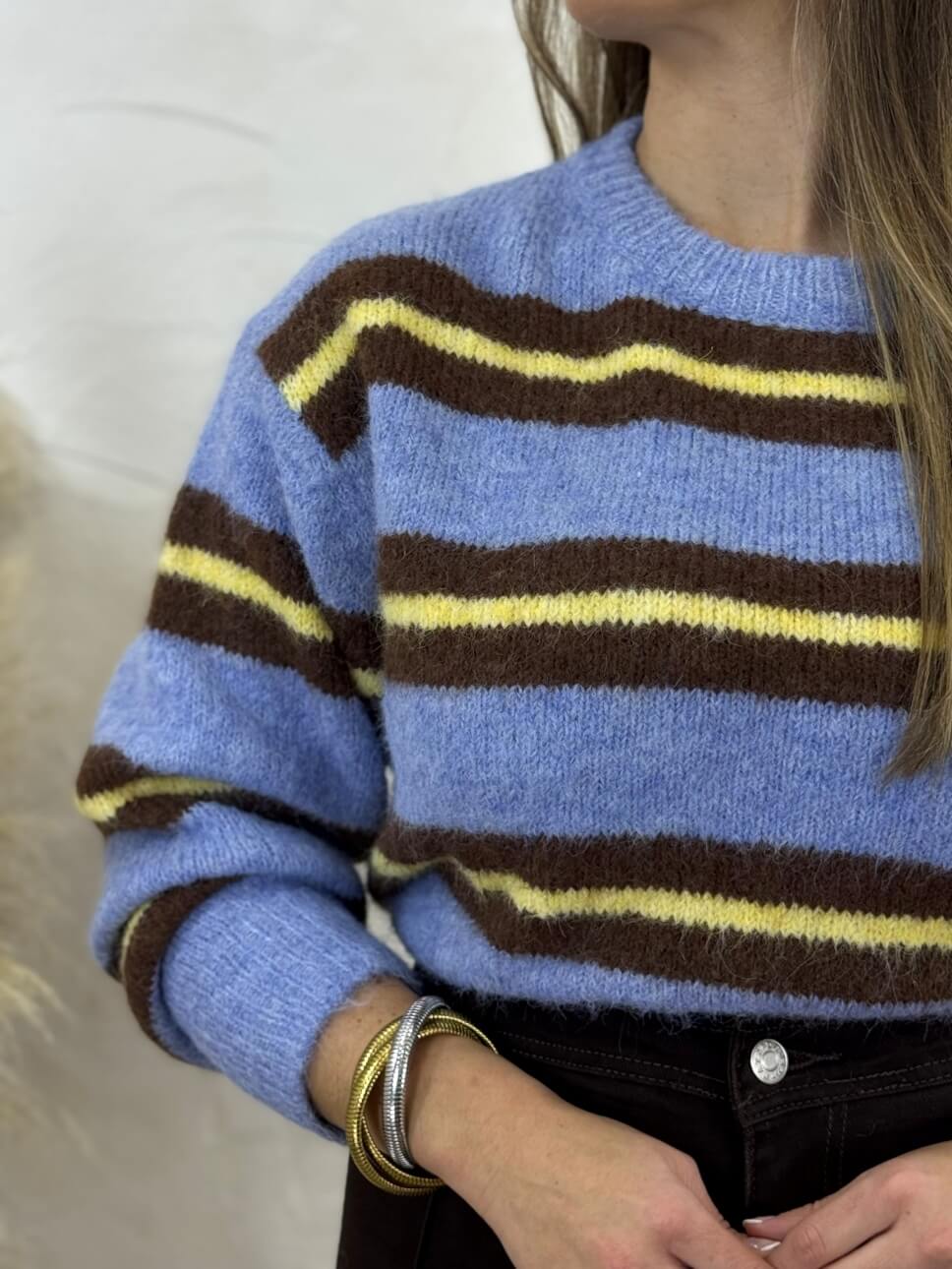 Jersey de lana estampado de rayas en 3 colores y cuello redondo.