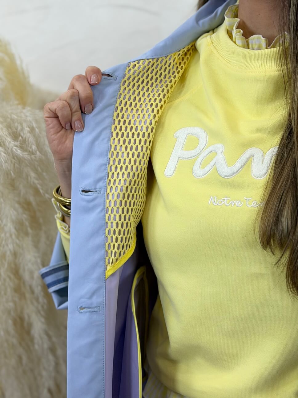 Parka de nuestra colección mountain 2026. Tiras ajustables en el cuello en tejido de 3 colores, mismo detalle en la costura de los botones, bolsillos y mangas para hacerla mas corto con botón. Detalles en el interior de rejilla, cierre abotonado, corchetes en el cuello.
