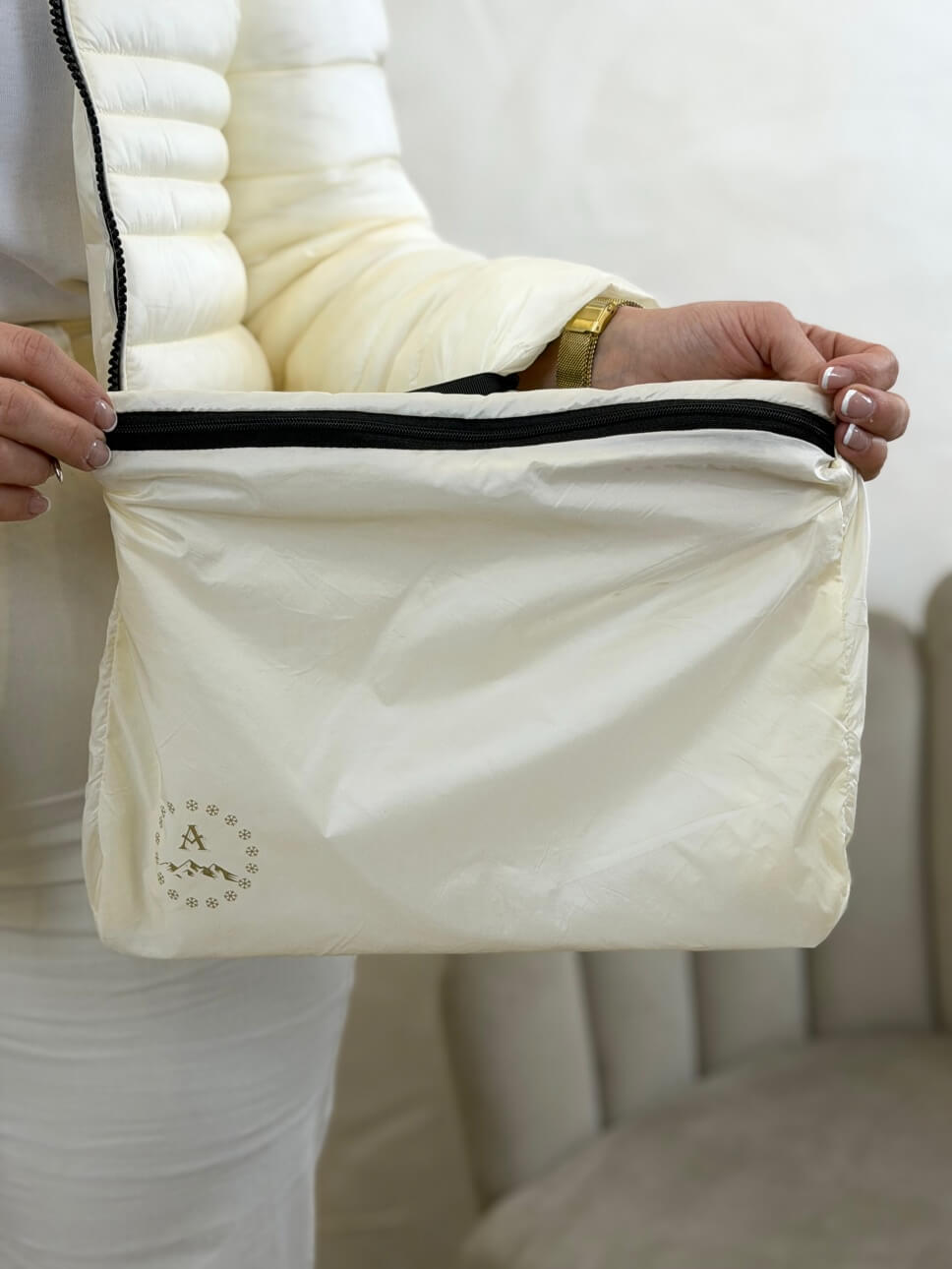 Plumi de la colección Mountain primavera 2026. Capucha desmontable, bolsillos laterales con cremallera, cierre cremallera. *BOLSA INCLUIDA con cierre de cremallera para guardarla.