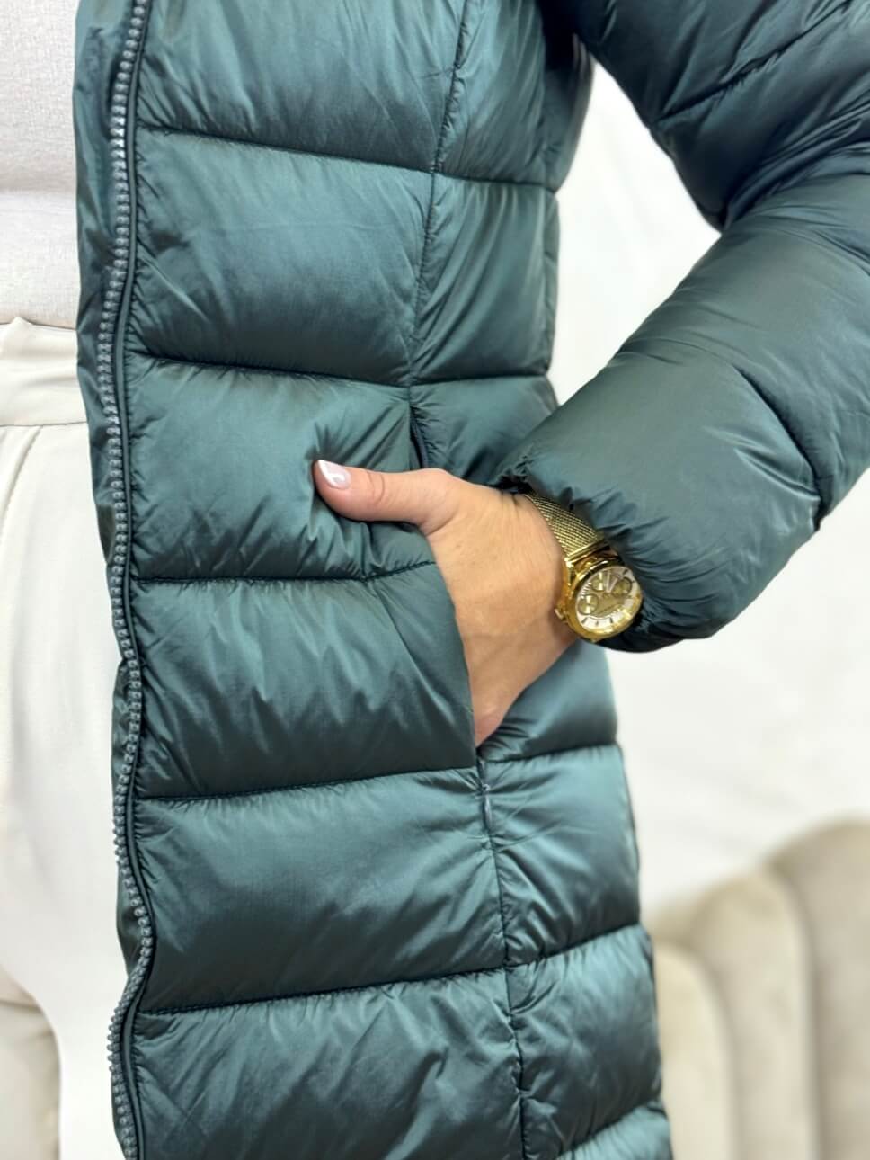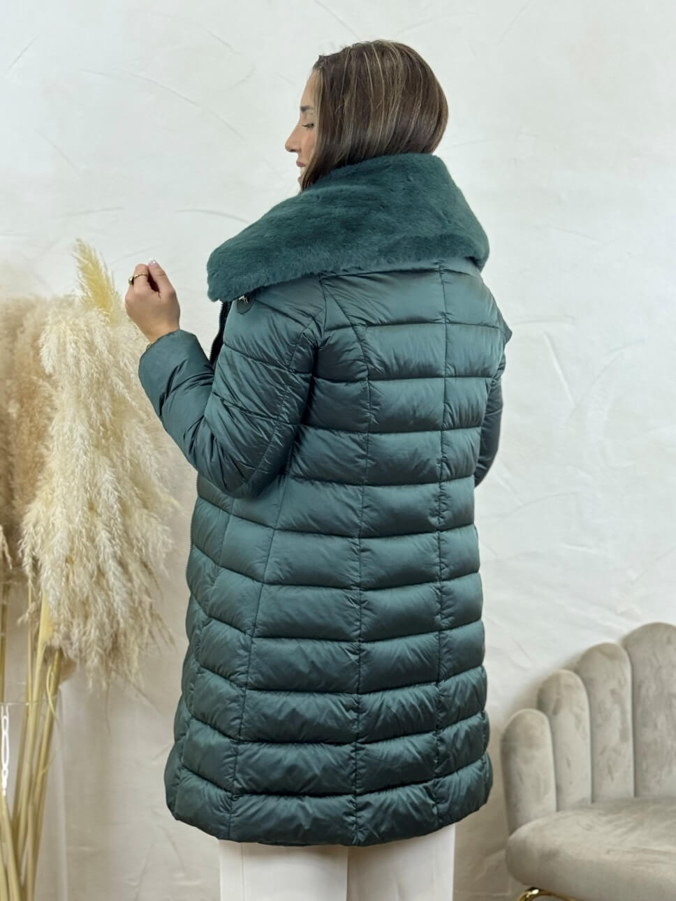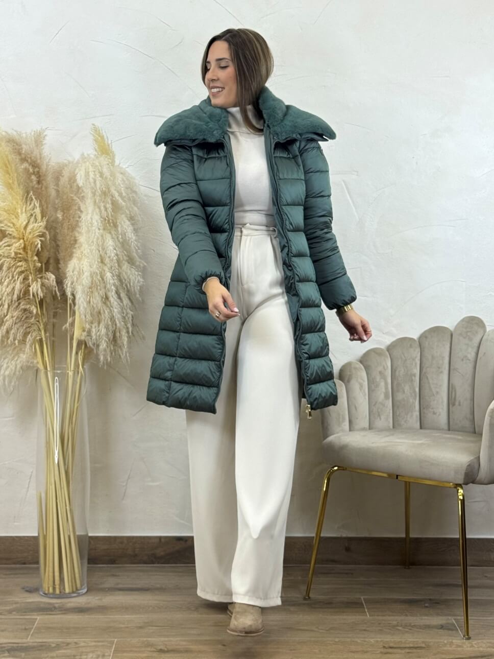 Plumi de nuestra colección Snow con maxi cuello de pelo sintético de alta calidad efecto rasado desmontable con corchetes y botón. Cierre con cremallera, bolsillos laterales con cremallera efecto invisible.