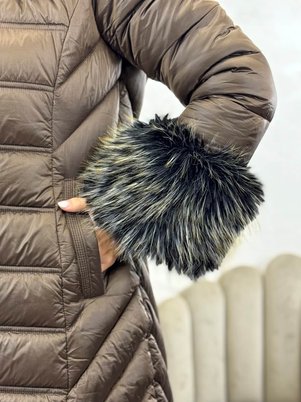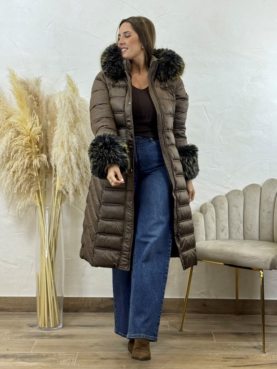 Plumi de la colección Snow con pelo bicolor sintético de alta calidad en los puños y en la capucha. Capucha desmontable y pelo de los puños también. Bolsillos laterales con cierre de cremallera. Cierre de cremallera.