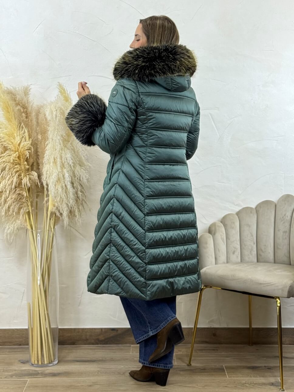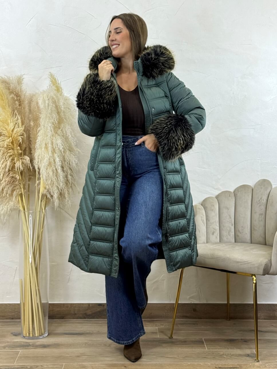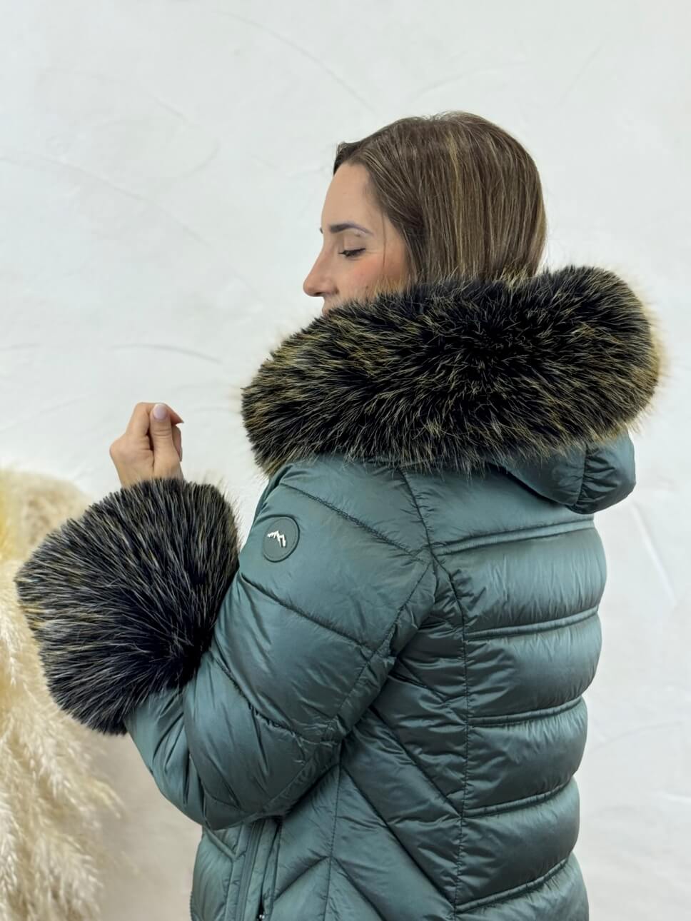 Plumi de la colección Snow con pelo bicolor sintético de alta calidad en los puños y en la capucha. Capucha desmontable y pelo de los puños también. Bolsillos laterales con cierre de cremallera. Cierre de cremallera.