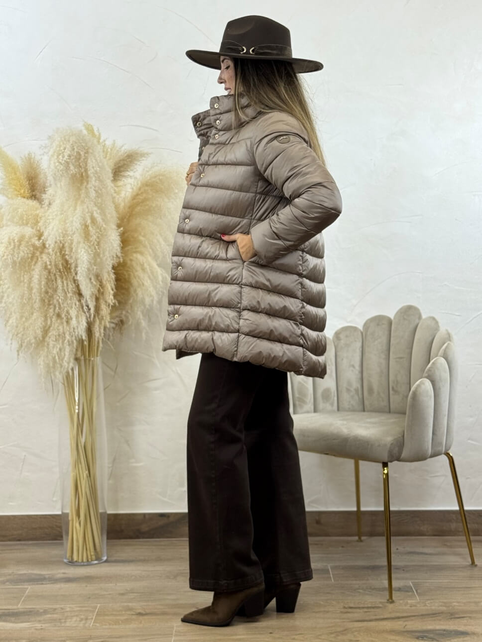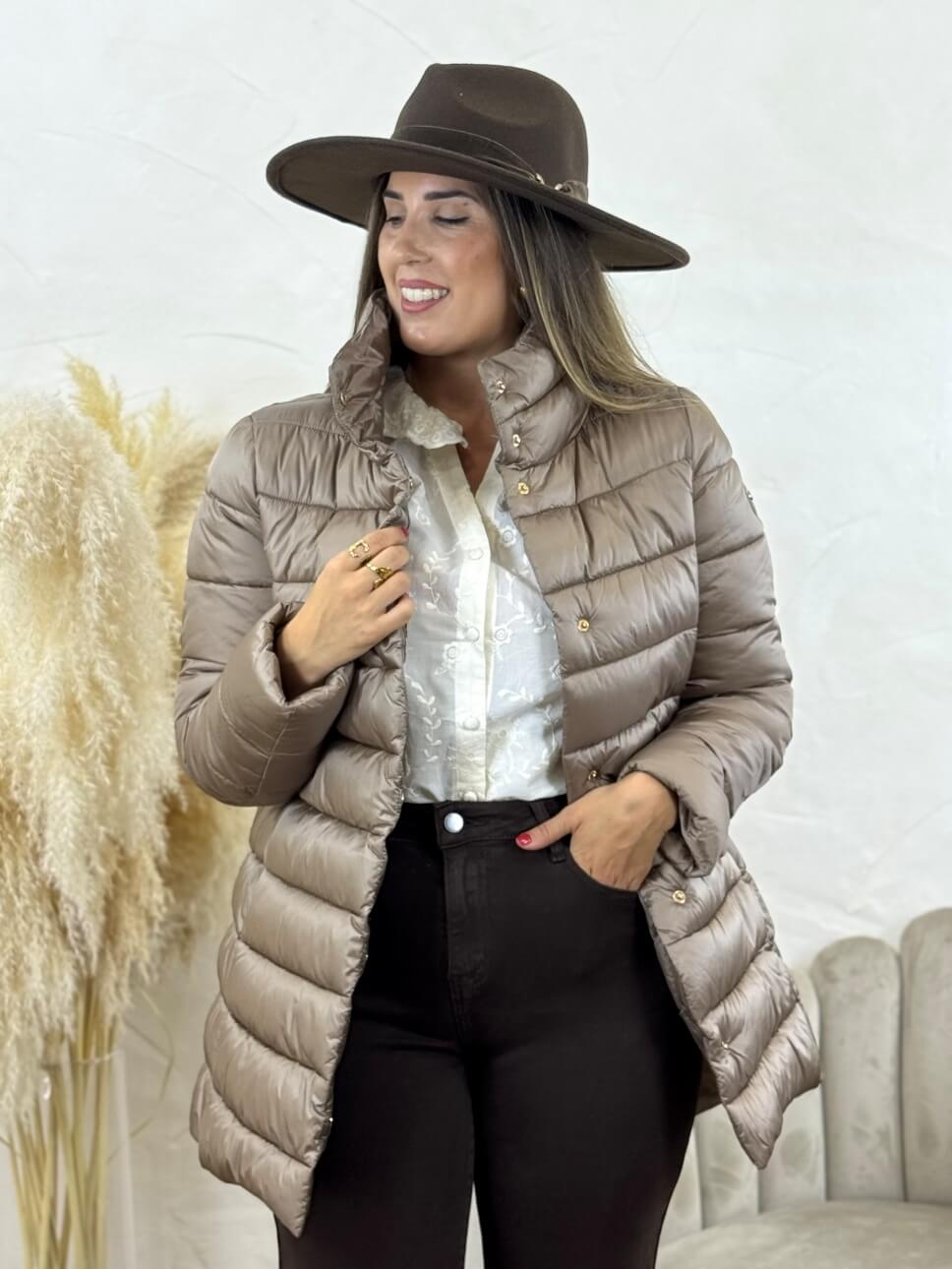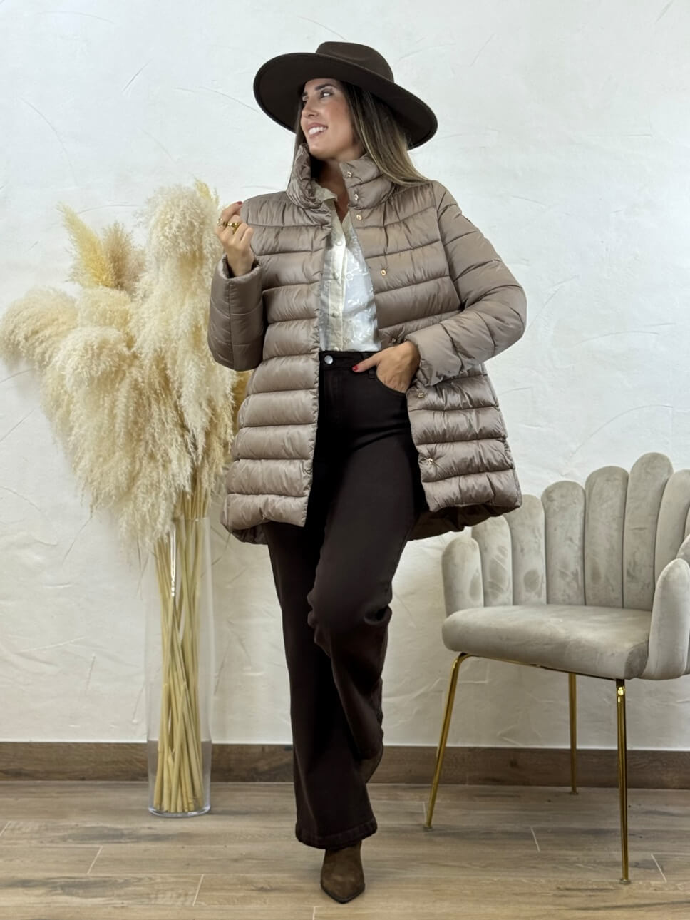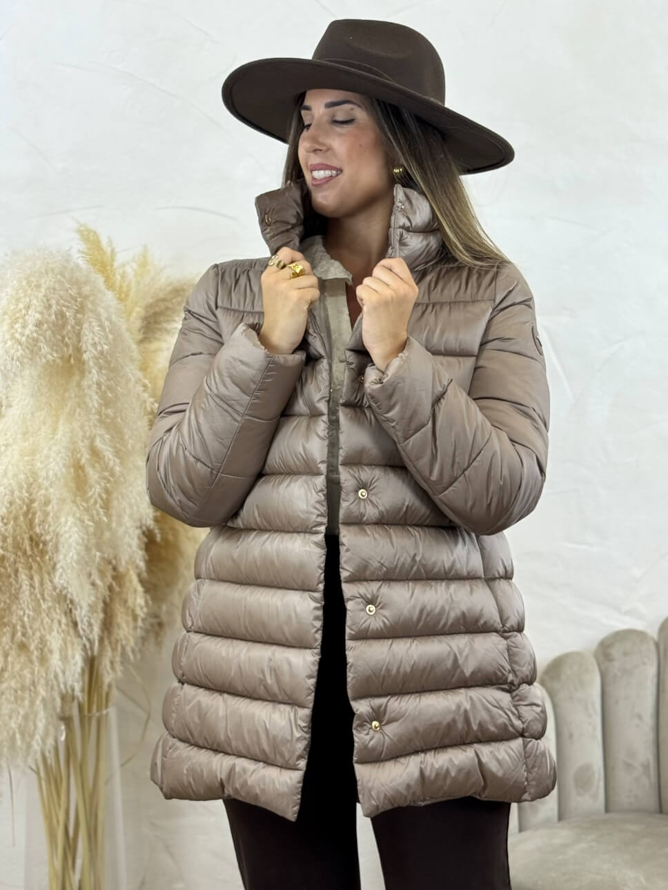 Plumi de nuestra colección Snow, cierre con corchetes, maxi cuello, bolsillos laterales con cierre de cremallera invisible, bolsillo interior.