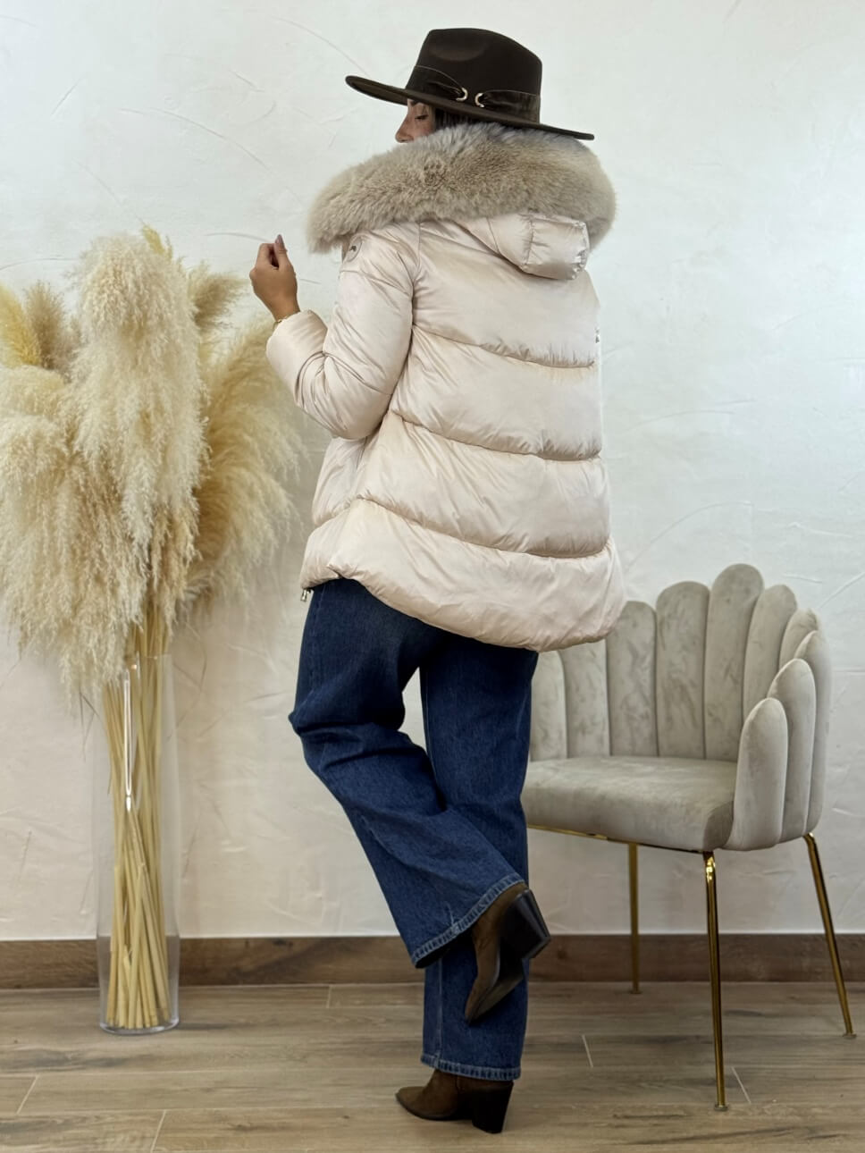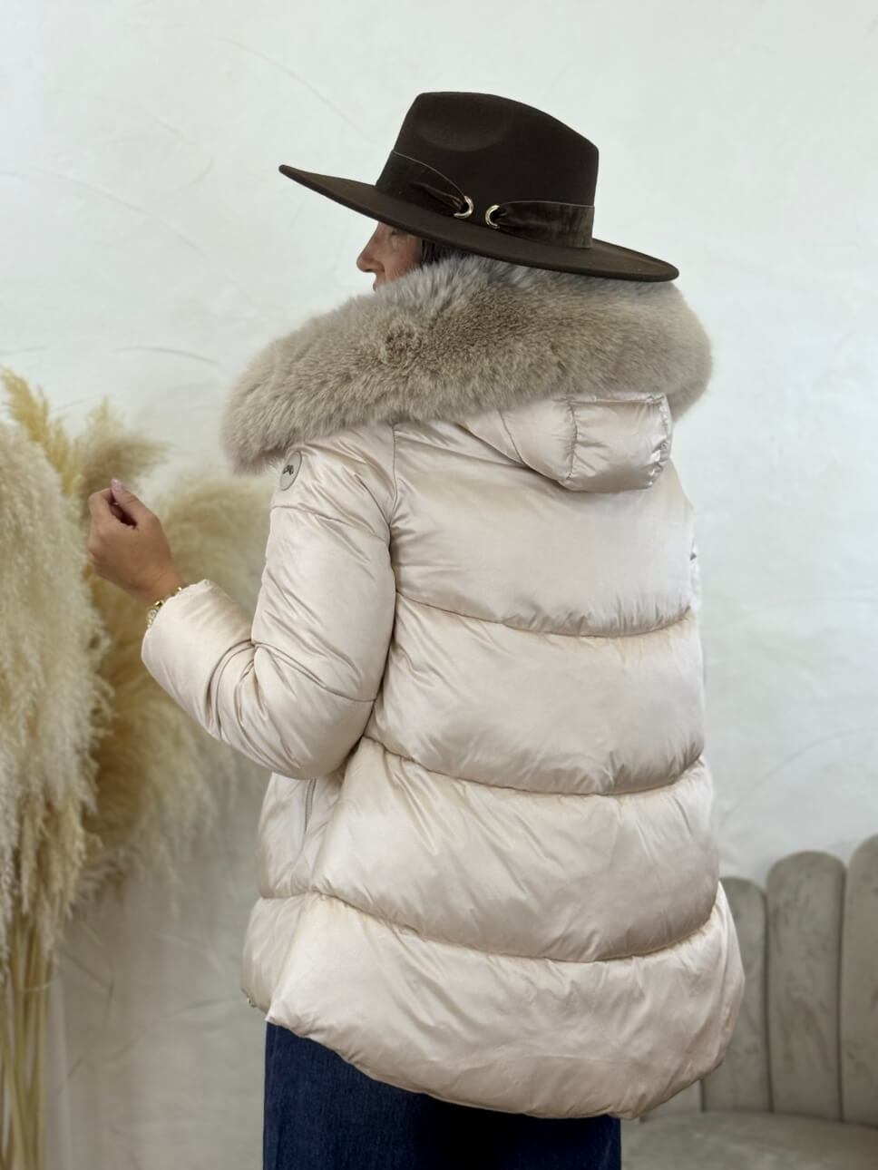 Nuestro plumi más top de la colección Snow!! La capucha no es desmontable, el pelo es sintético de alta calidad y es desmontable. Este año viene con bolsillo interior. Bolsillos laterales con cremallera, cierre con cremallera, corte evasé, más largo por detrás que por delante.