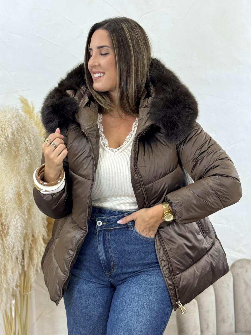 Nuestro plumi más top de la colección Snow!! La capucha no es desmontable, el pelo es sintético de alta calidad y es desmontable. Este año viene con bolsillo interior. Bolsillos laterales con cremallera, cierre con cremallera, corte evasé, más largo por detrás que por delante.