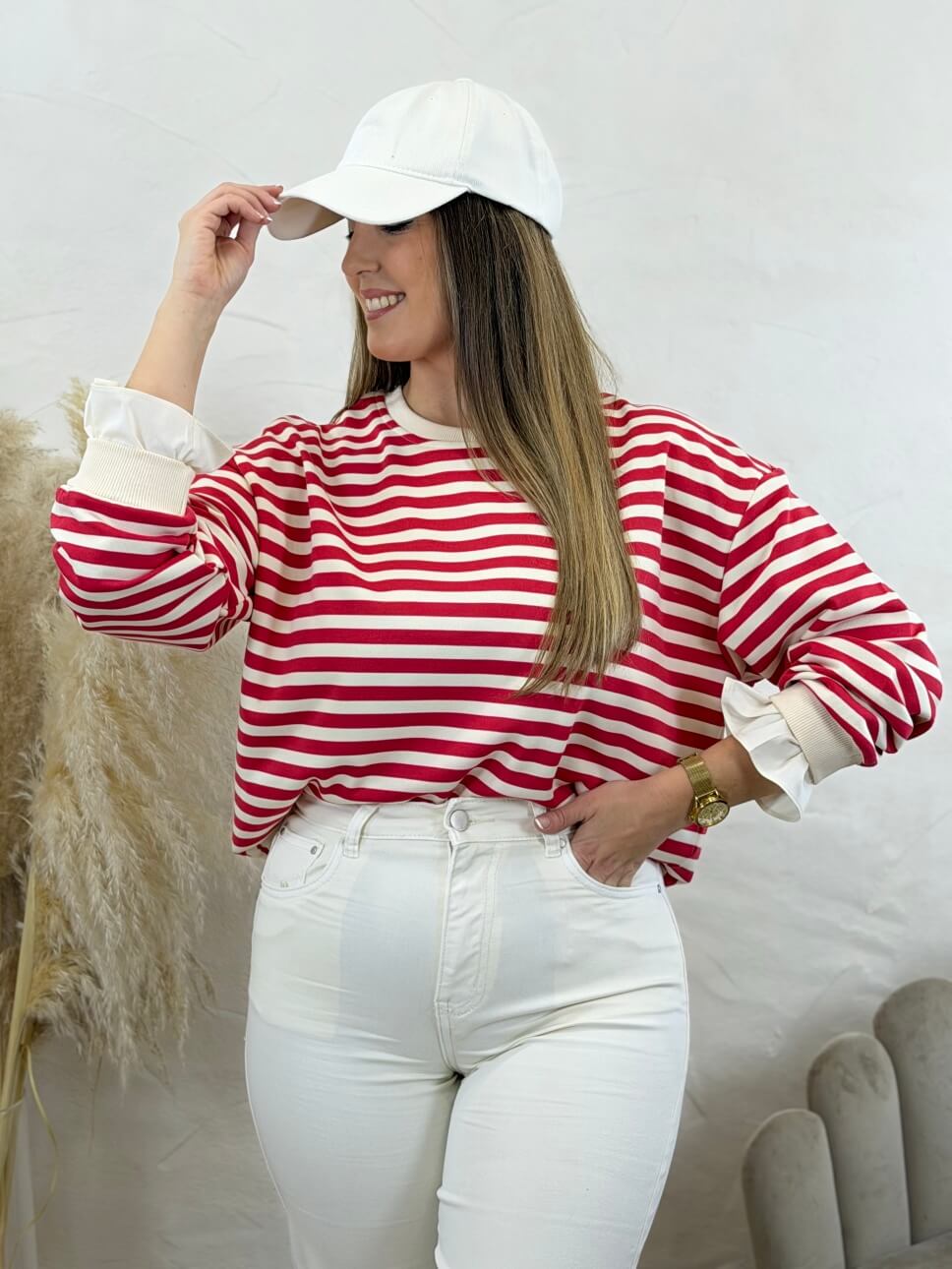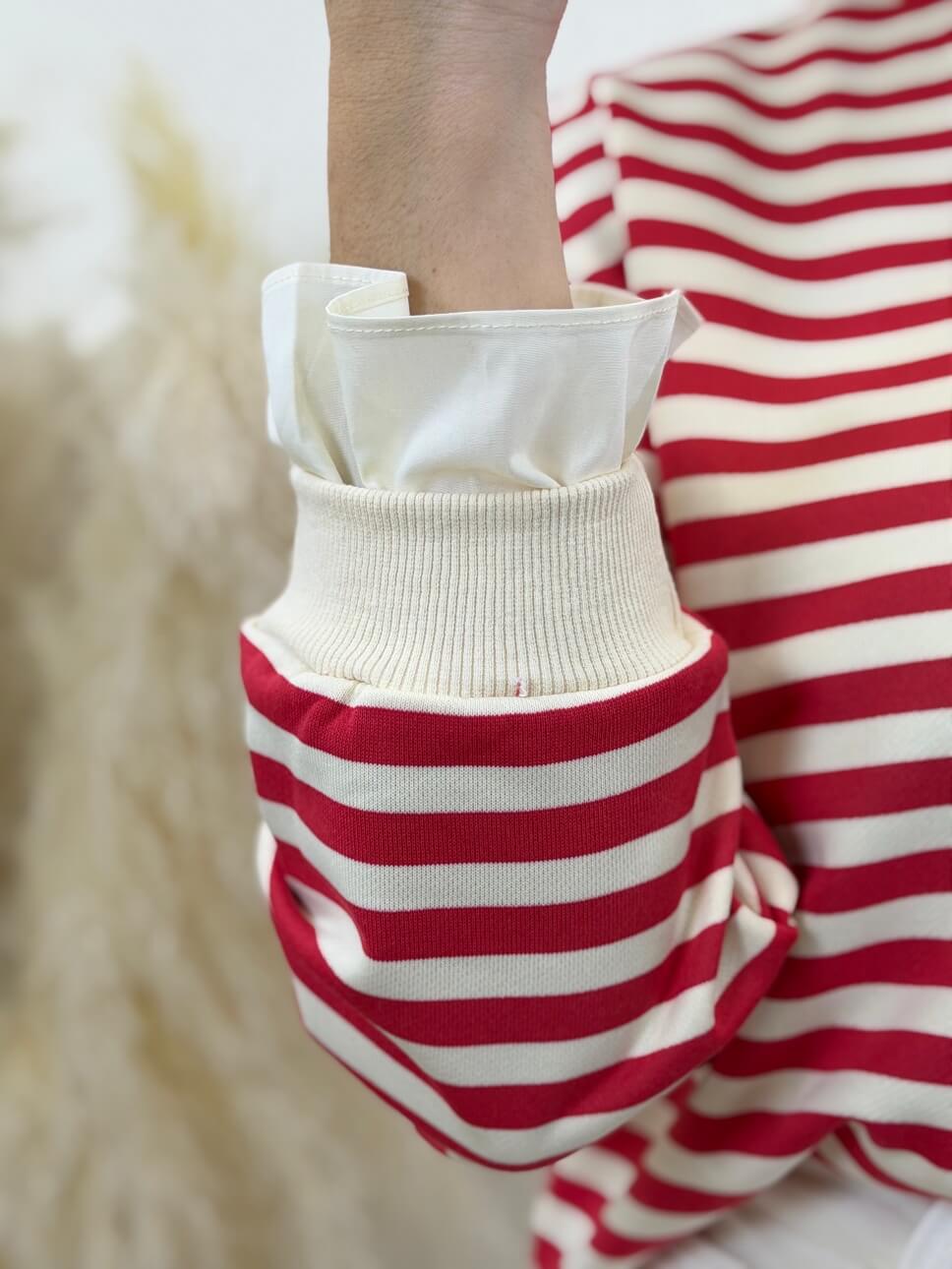Sudadera Rayas Puño Camisa Rojo & Crudo