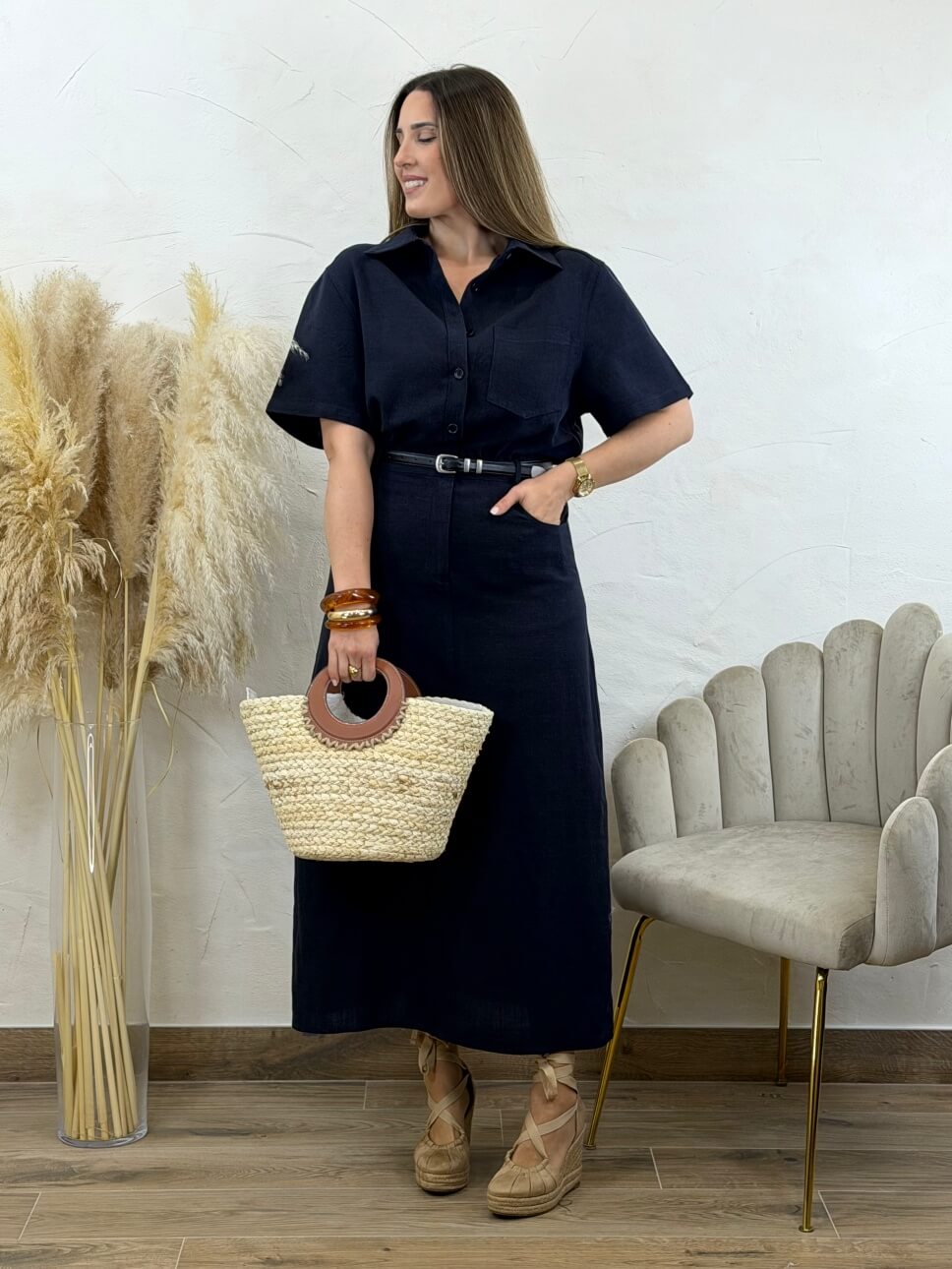 Vestido Lino Cécile Marino